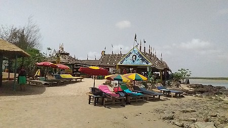 De loin, nous attend un sympathique petit coin où on retrouve un paquet de restaurants. Parmi eux, le restaurant "Chez rasta" où nous prendrons notre déjeuner. Ultime acte de notre voyage de presse au Sénégal.