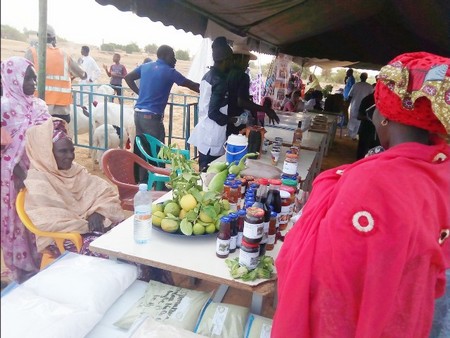 Barrer le chemin à l’immigration clandestine selon le chanteur. A la fin du tour effectué par l’artiste, la cérémonie officielle a débuté. On lisait une grande satisfaction des femmes après cette visite qui ne manquera pas de booster les produits locaux. « L’unité nationale, gage de tout développement »