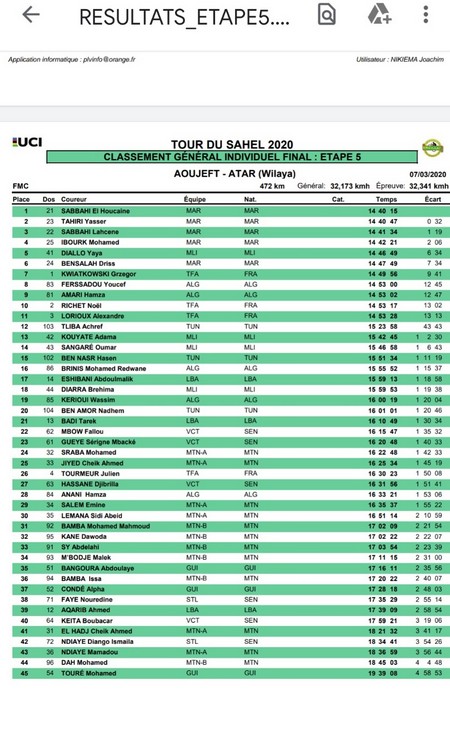 Ce sont les coureurs de l’équipe nationale marocaine. C’est un niveau assez élevé. Derrière les français, les tunisiens et même un peu les libyens ont essayé de rivaliser. Mais c’était un peu dur. Et puis, nous avons nos coureurs mauritaniens qui progressent depuis la première édition.
