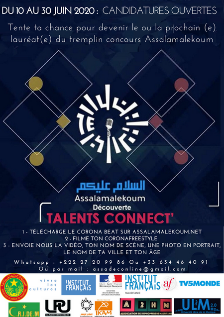 POUR VOUS INSCRIRE, envoyez votre nom de scène, votre ville d’origine, une photo portrait et votre coronafreestyle (faire une vidéo maximum de 16 mesures soit 40 secondes maximum sur le beat téléchargeable sur le site assalamalekoum.net) par WhatsApp au +222 27 20 99 86 ou au +33 6 34 46 40 91 ou par mail à assadeconline@gmail.com.