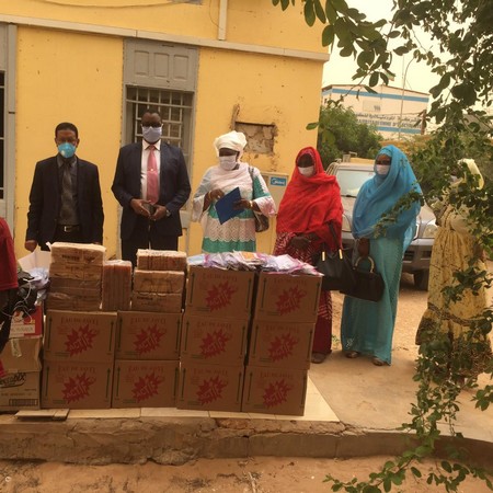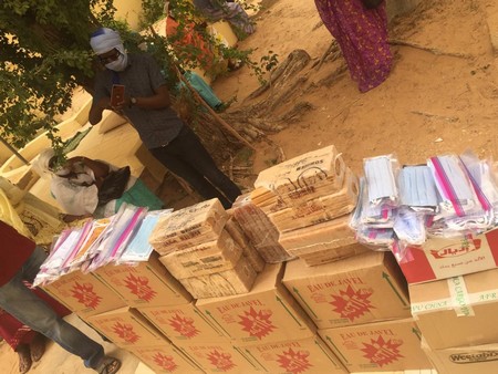 Le don est composé des lots de masques en tissu lavable et réutilisables confectionnés par des tailleurs mauritaniens, du savon et de l’eau de javel.