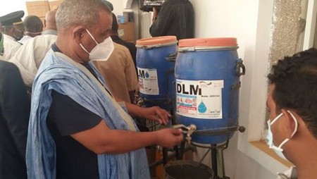 La GIZ contribue ainsi à fournir à ses partenaires dans les régions du Tagant et du Brakna ainsi qu'à la commune de Sebkha le matériel de protection requis d’urgence, comme les masques, les gants, les liquides antiseptiques et les stations mobiles pour le lavage des mains.