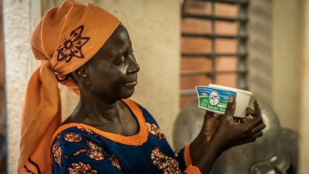 Halimata Sanne appose une étiquette sur un pot de yaourt dans sa petite laiterie de Ouagadougou. Elle veut que le gouvernement impose des droits sur le lait importé. «Le lait local a un bon goût. Nous pouvons goûter la crème à l’intérieur », dit-elle. «Je peux tout de suite faire la différence avec le lait en poudre. Nous ne savons pas comment cela a été fait. | Simon Marks pour POLITICO