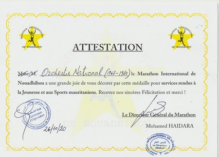 Il y’a lieu de rappeler que le père de la Nation Maitre Moctar DADDAH (qu’ALLAH l’accueille au Paradis éternel) a eu l’idée de la création de l’orchestre national qui fut une réussite. Je demande à toute personne qui lit cet article de le transmettre aux concernés (les médaillés) s’il les connait.