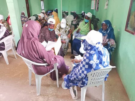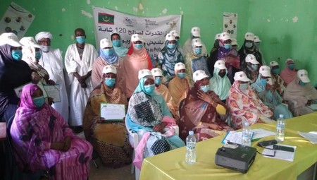 Ensuite un diagnostic participatif a été lancé dans toutes les localités de la commune en vue de répertorier toutes les dynamiques locales permettant ainsi d’établir Mapping(identification des bénéficiaires) dans 16 quartiers de la commune d’Aleg et pareillement à Bouhdida. Ces interventions se sont poursuivies par la mise en place de 4 groupes d’autonomisation de jeunes femmes réparties à part égale dans les deux communes ciblées.
