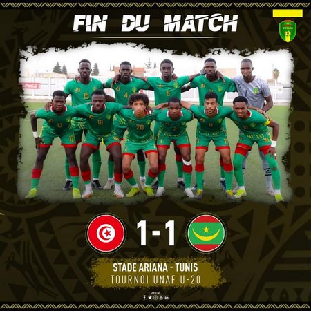 Cridem Sports - La Mauritanie a réussi à arracher le nul face à la Tunisie ce jeudi 11 novembre lors de son premier match du tournoi de l'UNAF qui se déroule du 8 au 18 novembre 2021 en Tunisie. Un bon nul encourageant des Mourabitounes juniors qui ont réalisé une prestation solide.