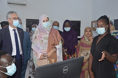 La ministre mauritanienne de l’Enseignement supérieur et de la Recherche scientifique et l’ambassadeur français en Mauritanie ont visité mardi 23 novembre le projet FORMADIS-FLE qu’abrite le centre de formation d’échanges à distance de Mauritanie.