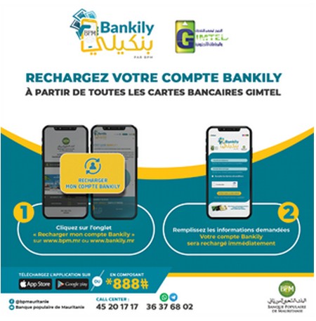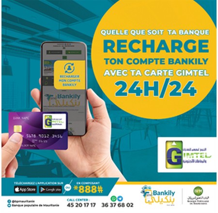 Grâce à ce partenariat avec GIMTEL (Le Groupement Interbancaire de Monétique et des Transactions Electroniques), les usagers de la banque digitale Bankily pourront alimenter leur compte bancaire Bankily à partir d’une carte bancaire GIMTEL émise par n’importe quelle banque Mauritanienne.