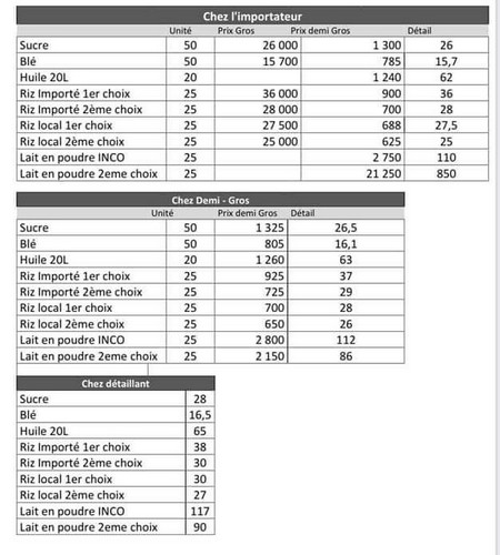 La liste des produits inclus dans la nouvelle tarification comprend : le sucre, le blé, l'huile, le riz et le lait en poudre.