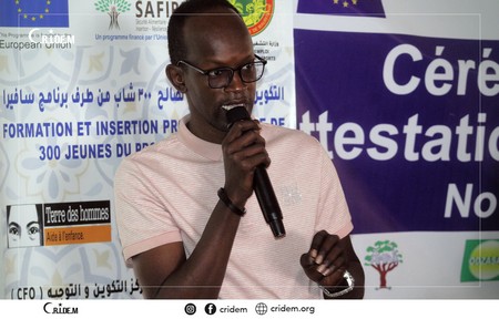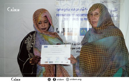 Dans le cadre du Consortium, la Fondation Terre des hommes – Lausanne et l’Association des Femmes Cheffes de Famille, en partenariat avec Techghil, a accompagné et validé à Nouakchott les parcours d’insertion de 287 jeunes sur les 296 inscrits, soit un taux de réussite de 95.6%. Leur formation professionnelle a été assurée par le Centre de Formation et d’Orientation A4 D Base (situé à côté de la station bleue Pétro dis) à SAMIA, dans la Moughataa de El Mina.