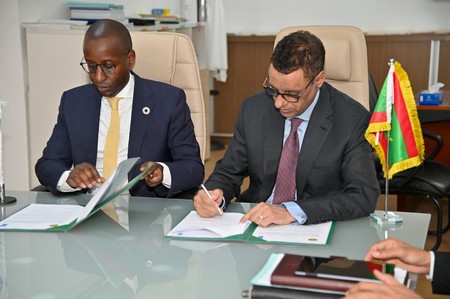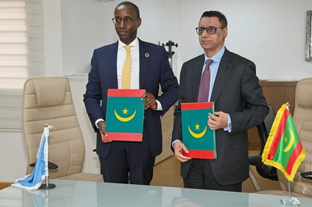 Les documents ont été paraphés par le ministre mauritanien du Pétrole, des Mines et de l'Energie, Abdessalam Ould Mohamed Salah (photo, à droite) et le représentant résident du PNUD en Mauritanie, Anthony Ngororano (photo, à gauche).