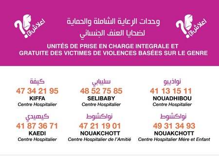 Des services d’aide aux femmes victimes de violences existent et sont fonctionnelles en Mauritanie. Ainsi six unités de prise en charge (USPEC) ont été mises sur pied à Nouakchott (2), Sélibaby, Nouadhibou, Kiffa et Kaedi depuis 2017 avec l’appui de l’Union européenne et de ses Etats membres (France, Espagne…).