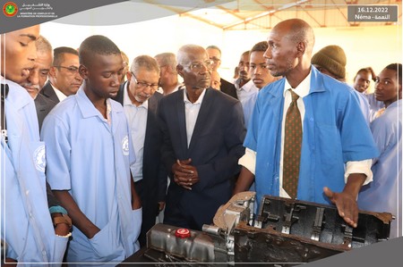 Durant les discussions ouvertes avec les directeurs et le personnel de ces établissements, le Ministre a souligné l’importance de doter les établissements d’équipements performants, actuels et adaptés à la réalité du terrain et a rassuré ces derniers quant à la disponibilité des ressources nécessaires pour ce faire. C’est la première fois que l’Etat met à la disposition de la formation professionnelle un budget d’investissement de 2 milliards d’ouguiya dédié aux équipements des écoles de l’intérieur.