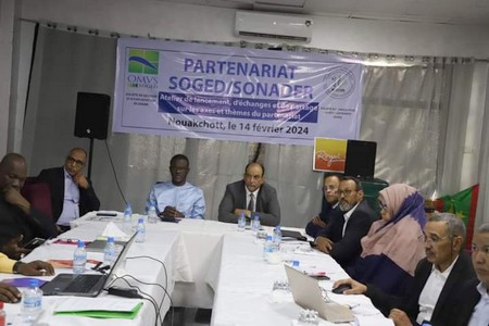 Après les discours officiels du Directeur Général de la SONADER, M. Hamada Ould Didi Ould Sid'Ahmed, et du Directeur Général de la SOGED, M. Youssoupha Kamara, l'atelier a vu des présentations se dérouler les présentations sur les axes de la stratégie commune entre les deux parties, ainsi que l'expérience des deux entreprises, suivies de discussions et d'échanges entre les deux équipes.