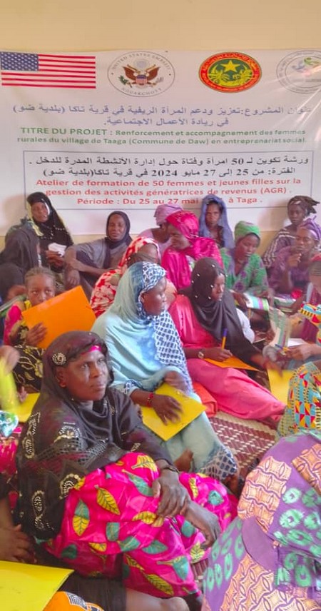 Le Hakem a remercié l'ambassade des États-Unis d'Amérique en Mauritanie qui a fiancé ce projet d'accompagnement des femmes porté par l'association solidarité féminine pour le Développement Économique et Social.