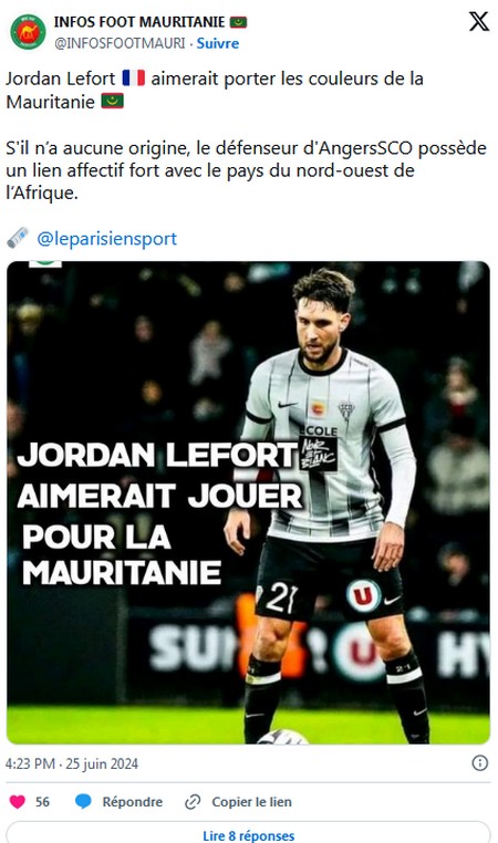 Afrik-foot - Pensionnaire du SCO d'Angers (vice-champion de Ligue 2 et promu en Ligue 1), Jordan Lefort a créé la sensation en adressant un appel du pied à la sélection de Mauritanie !