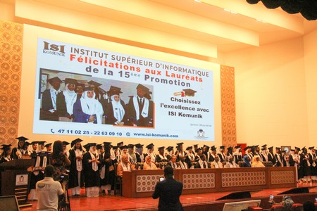 Plusieurs intervenants se sont succédé sur la scène pour délivrer un fort message à la 15e promotion de l'Institut Supérieur d'Informatique (ISI Komunik).