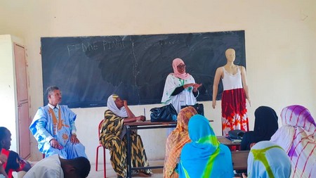 Cette journée de sensibilisation a été caractérisée par 2 activités : la première activité ; c’est une séance de sensibilisation animée par un binôme de deux femmes, Madame Haby Abou Sow, Sage-femme et Aissata Amadou Sall infirmière, au profit des élèves du lycée de Mbout en présence du Directeur du lycée Mr Sidi Mohamed Brahim.