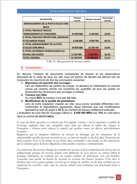 Conclusion d’un rapport confidentiel d’expertise indépendant sur la construction de la piste, commandé par l’ONG Transparence inclusive, en date du 22 mars 2024.