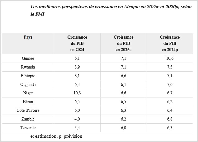Les meilleures perspectives de croissance en Afrique en 2025e et 2026p, selon le FMI