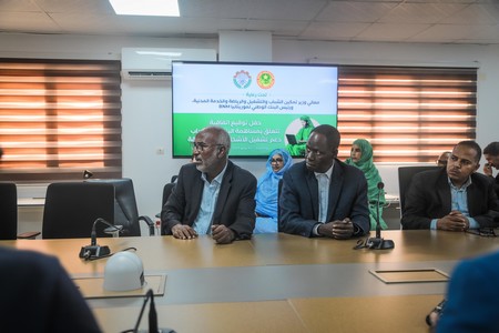 Sous la supervision de Son Excellence Monsieur Mohamed Abdallahi Ould Louly, Ministre de l’Autonomisation des Jeunes, de l’Emploi, des Sports et du Service civique, et de Monsieur Mohamed Ould Noueigued, Président du Conseil d’Administration de la Banque Nationale de Mauritanie (BNM), et en vertu d’un mandat conjoint, les deux parties ont procédé à la signature d’une convention relative à la remise et aux modalités de décaissement d’une contribution financière destinée à soutenir les programmes d’emploi des personnes en situation de handicap.