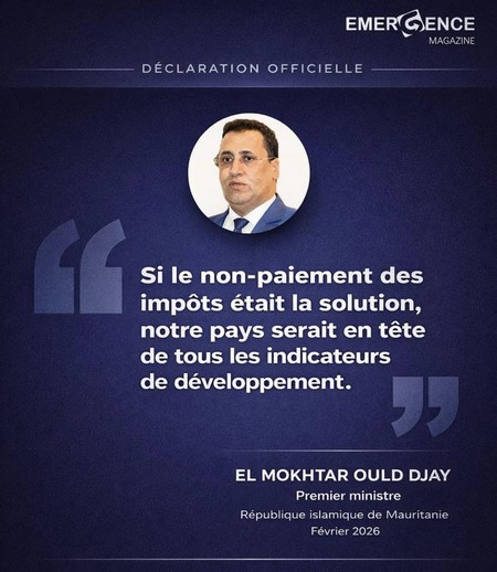 ÉMERGENCE MAURITANIE - Le Premier ministre, El Mokhtar Ould Djay, a publié une déclaration sur sa page Facebook en réaction aux critiques visant les récentes mesures fiscales, notamment celles relatives aux paiements électroniques et à la taxation des téléphones mobiles importés.
