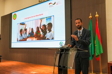 À ses côtés, M. René Zarske, Chef de projet ProH2 à la GIZ (Promotion des bases et cadres pour la production d'hydrogène vert en Mauritanie), a rappelé que la réussite de la transition énergétique repose sur l’implication de toutes les parties prenantes, à commencer par la jeunesse.